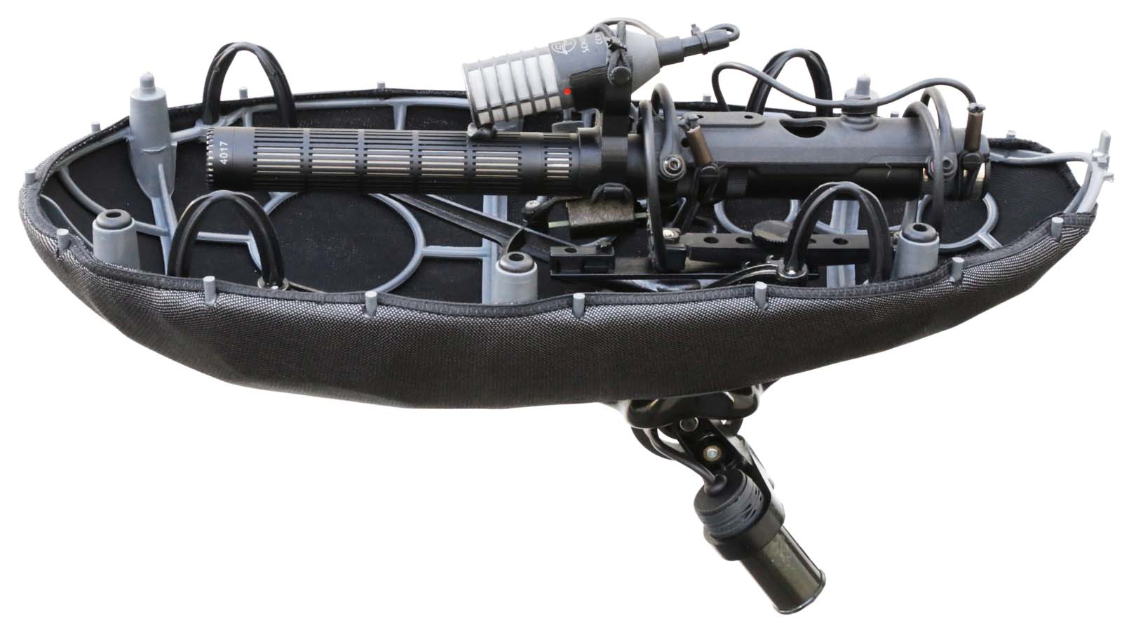 - Windscreen, cage, suspension module, and complete wiring corresponding to the microphone configuration.