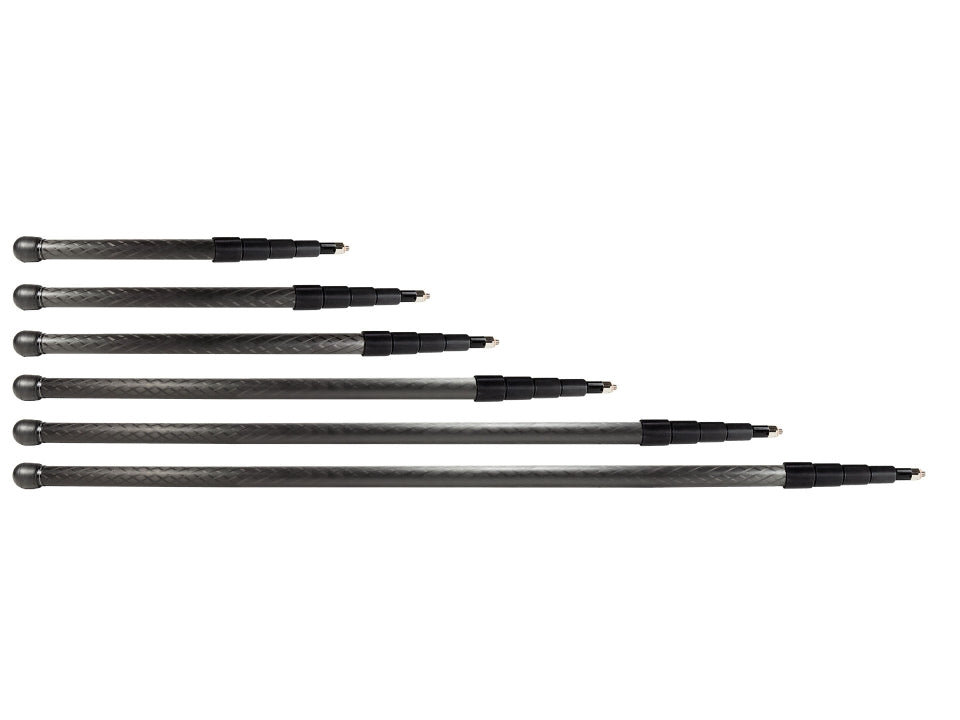 This carbon fiber boom pole is ideal for audio pros and boom operators who refuse to compromise on quality or convenience. This is why we offer the Series 5 pole in six different lengths: collapsed length ranges from 1.64 ft (50 cm) to 4.27 ft (150 cm). Extended length of our poles can go from 6.4 ft (195 cm) up to an impressive 20.99 ft (640 cm). Our longest pole can reach up to two stories high!