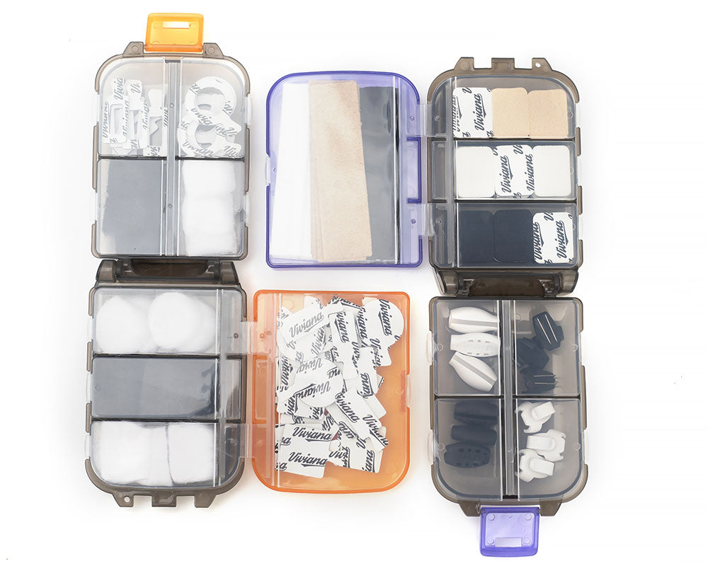 The Viviana Box Accessories is your ultimate solution for organizing and transporting all your essential accessories. This versatile box features three sections and seven compartments, making it perfect for carrying items like concealers, fur for lav, premium dot stickers, and more. The central section is specifically designed to hold Viviana Moleskin strips or Viviana Tape without needing to cut them.