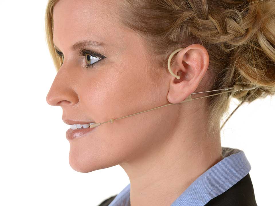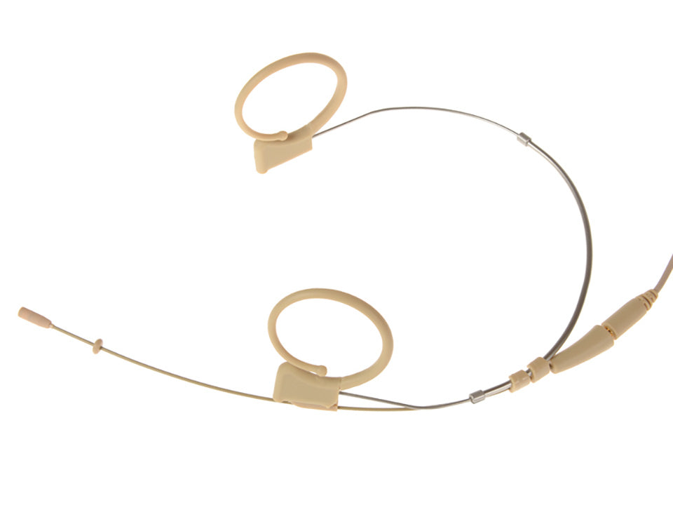 The adjustable headband is extremely comfortable and availabe in two sizes. The goose neck is flexible and can be worn either on the left or the right side.