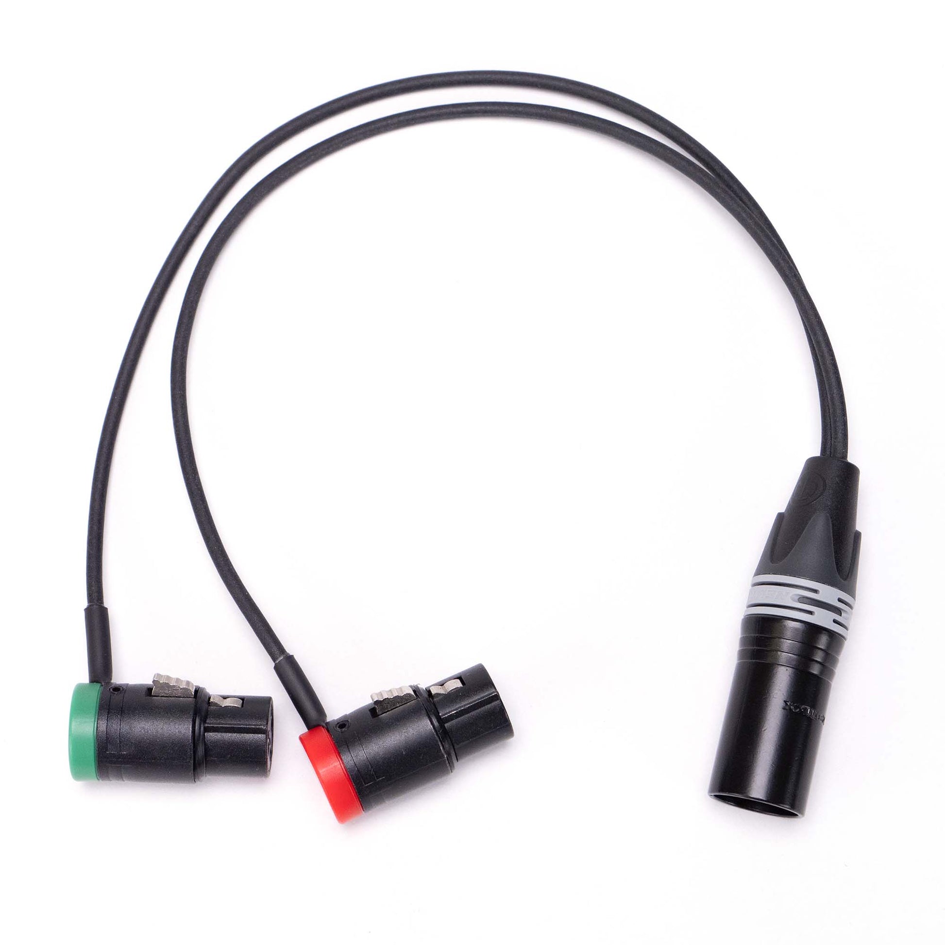 Audio adapter cable / Y-cable from two low profile XLR-3F female to XLR-5M male.