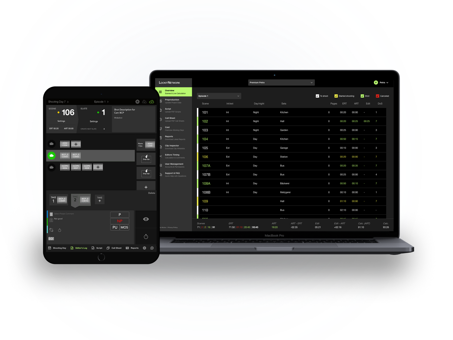 Wir digitalisieren die Arbeit der Script Supervisor mit unserer LockitScript App und bereiten die eingetragenen Content-Metadaten maßgeschneidert für Produktion und Post-Produktion auf.