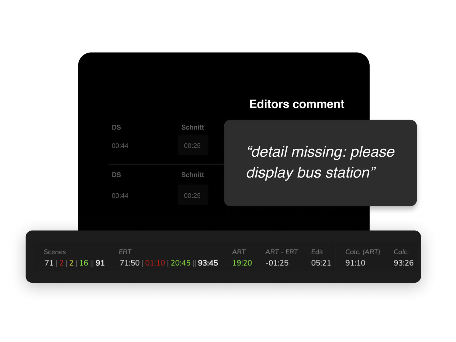 - Eingabe von Schnittstopp und Schnittkommentaren
