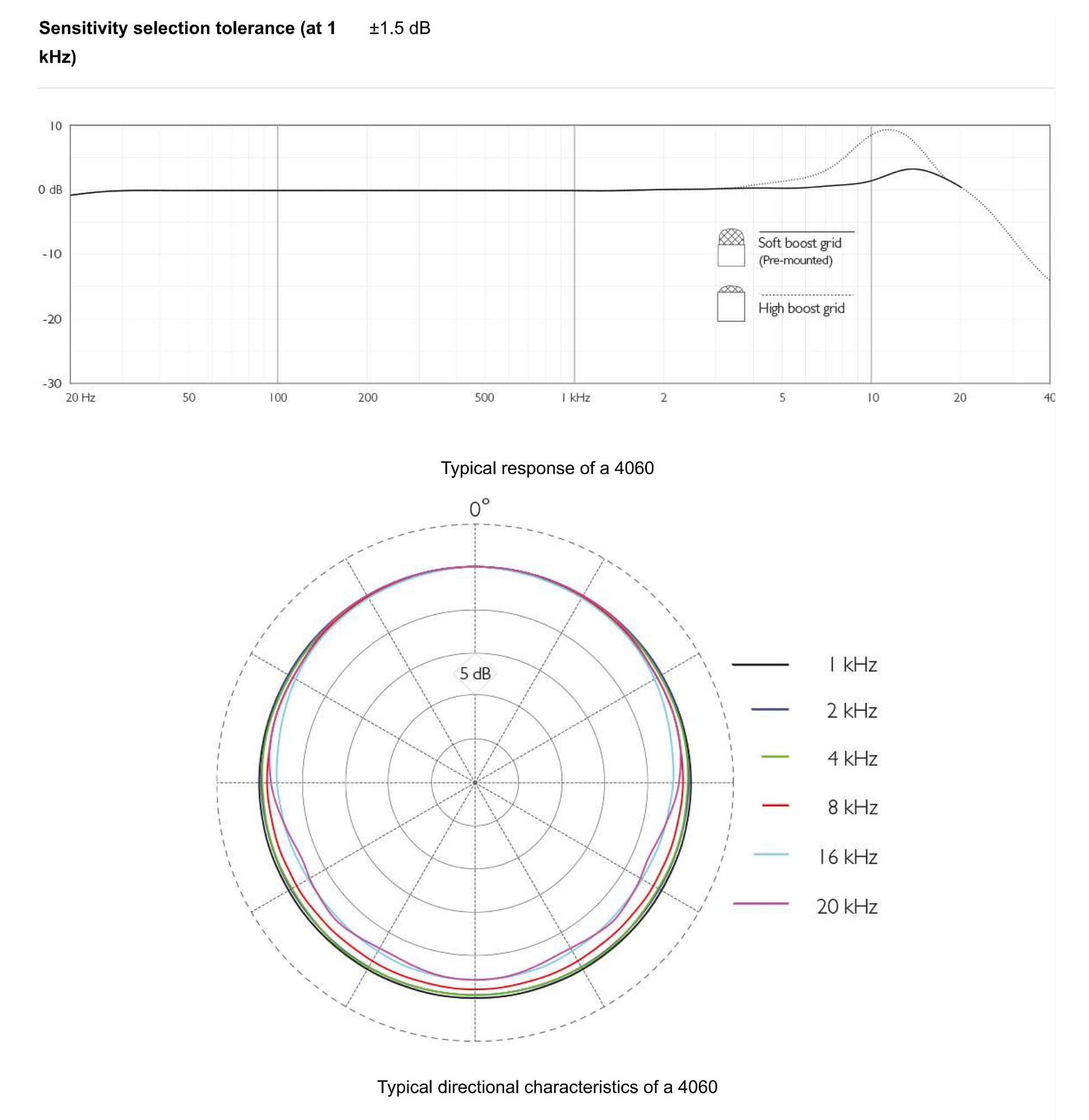 Der Frequenzgang der d:screet™ Serie 4060 kann mithilfe des richtigen Grids für den Job modifiziert werden. Jedes Mikrofon (mit Ausnahme des d:screet™ 4071 mit einem fest montierten Grid) wird mit zwei Grids ausgeliefert. Das vormontierte Soft Boost Grid liefert einen 3 dB Soft Boost bei 8–20 kHz. Es wurde für die Befestigung am Kopf konzipiert und eignet sich für die meisten anderen Anwendungen, für die Sie ein Mikrofon mit natürlichem Klang benötigen. Sobald es befestigt ist, liefert das High Boost Grid einen 10 dB Soft Boost im Bereich um 12 kHz und eignet sich somit besonders für alle Anwendungen mit Brustbefestigung. Dank eloxiertem Edelstahl sind die Oberflächen beider Grids strapazierfähig und kratzfest. Sie können vom Mikrofon entfernt und von Schweiß, Makeup usw. gereinigt werden.