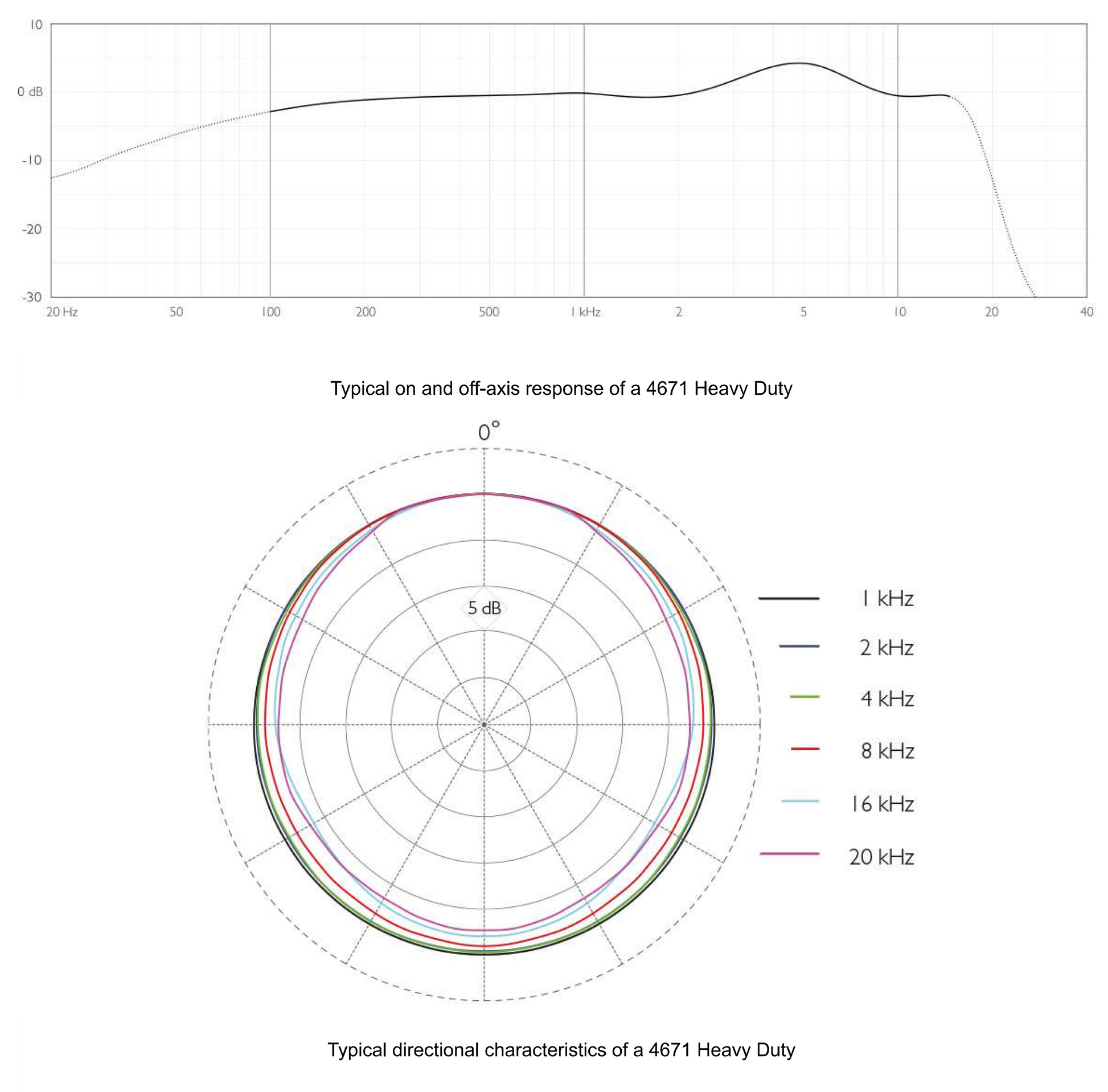 Das 4671 ist ein fantastisches Lavaliermikrofon, das sich durch eine Präsenzanhebung von üblicherweise 5 dB bei 4 bis 6 kHz auszeichnet und daher optimal für die Positionierung in Brusthöhe geeignet ist. Das Mikrofon verfügt über einen Boost, der die Sprachverständlichkeit maximiert. Dieses Mikrofon schafft mühelos bis zu 144 dB Schalldruckpegel (SPL) vor Übersteuerung.