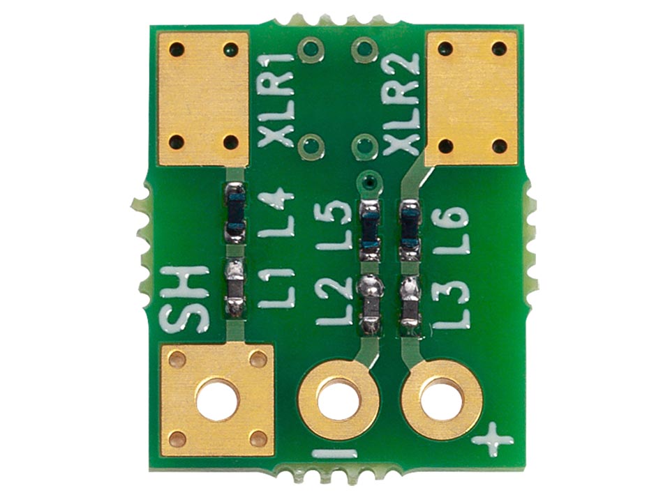 Platine zur Reduzierung von HF-Interferenzen. Wird an das weibliche Ende eines XLR-Kabels gelötet.