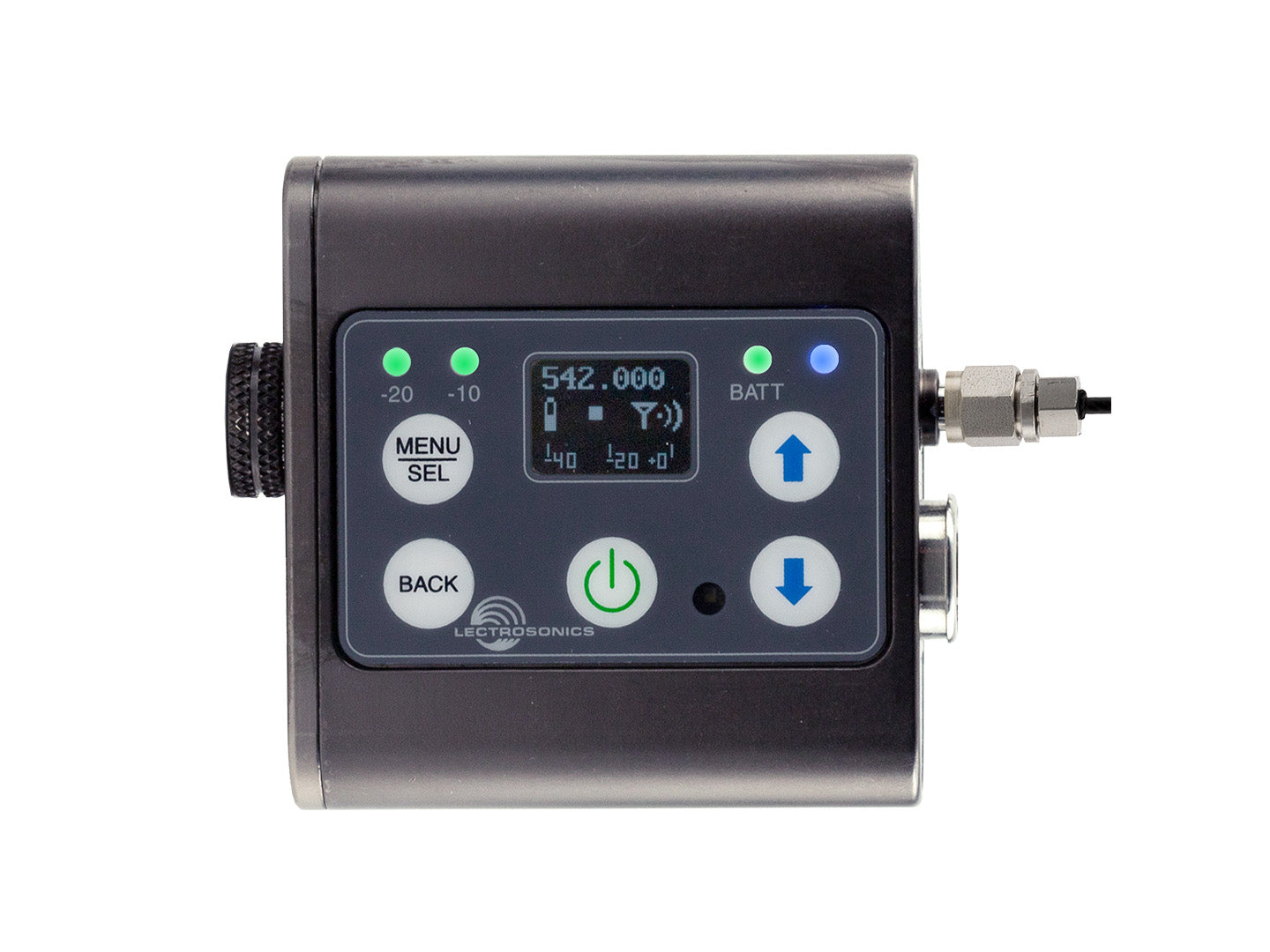 Die Eingangssektion verfügt über die einzigartige Lectrosonics Servo-Bias-Eingangsschaltung mit einer Standard TA5M-Buchse zur Verwendung mit Elektret-Lavaliermikrofonen, dynamischen Mikrofonen oder Line-Pegel-Signalen. Ein DSP-gesteuerter analoger Audio-Limiter wird vor dem ersten Mikrofonvorverstärker eingesetzt, um die gesamte Audiokette vor Übersteuerung zu schützen. Der Limiter verfügt über einen Bereich von mehr als 30 dB für einen exzellenten Übersteuerungsschutz und eine doppelte Release-Hüllkurve, die den Limiter akustisch transparent macht und gleichzeitig eine geringe Verzerrung bei kurzen Transienten und länger andauernden Spitzenwerten gewährleistet.