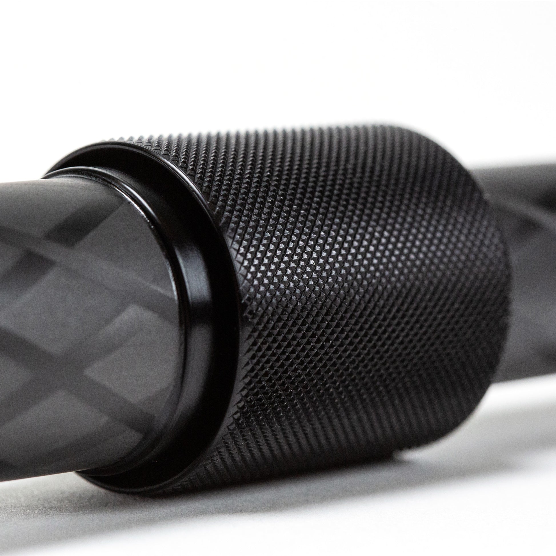 Mit nur einer Viertel-Drehung ist die Angel bombenfest verriegelt und seitliches Verdrehen wird komplett verhindert. Die langen Griffhülsen bieten euch mit ihrer fein geriffelten Oberfläche idealen Grip.