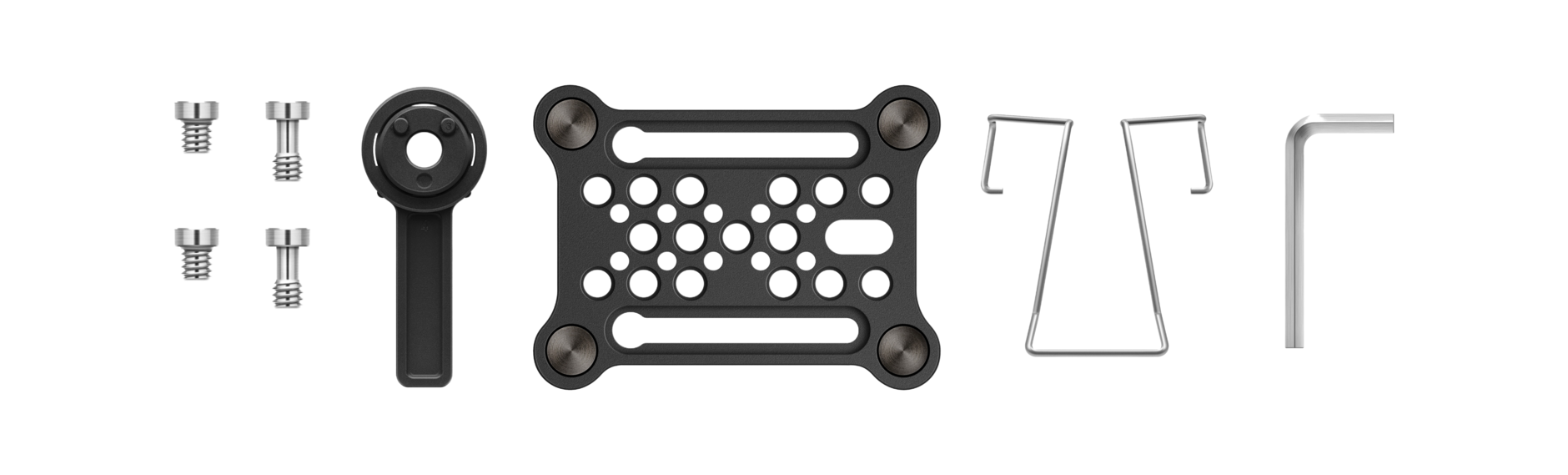 inklusive Befestigungsschrauben, Zubehörschuh, Innensechskantschlüssel und Gürtelclip.