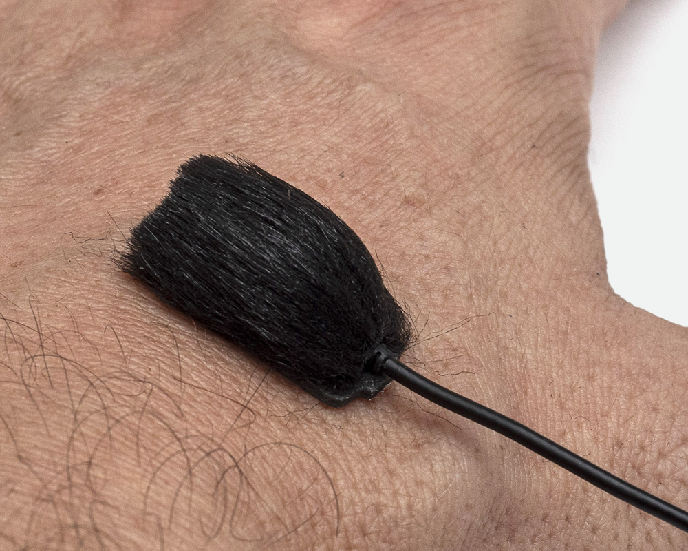 Das Fell bietet aber nicht nur großartigen Windschutz, sondern bewahrt gleichzeitig den natürlichen Klang der Lav Mics.