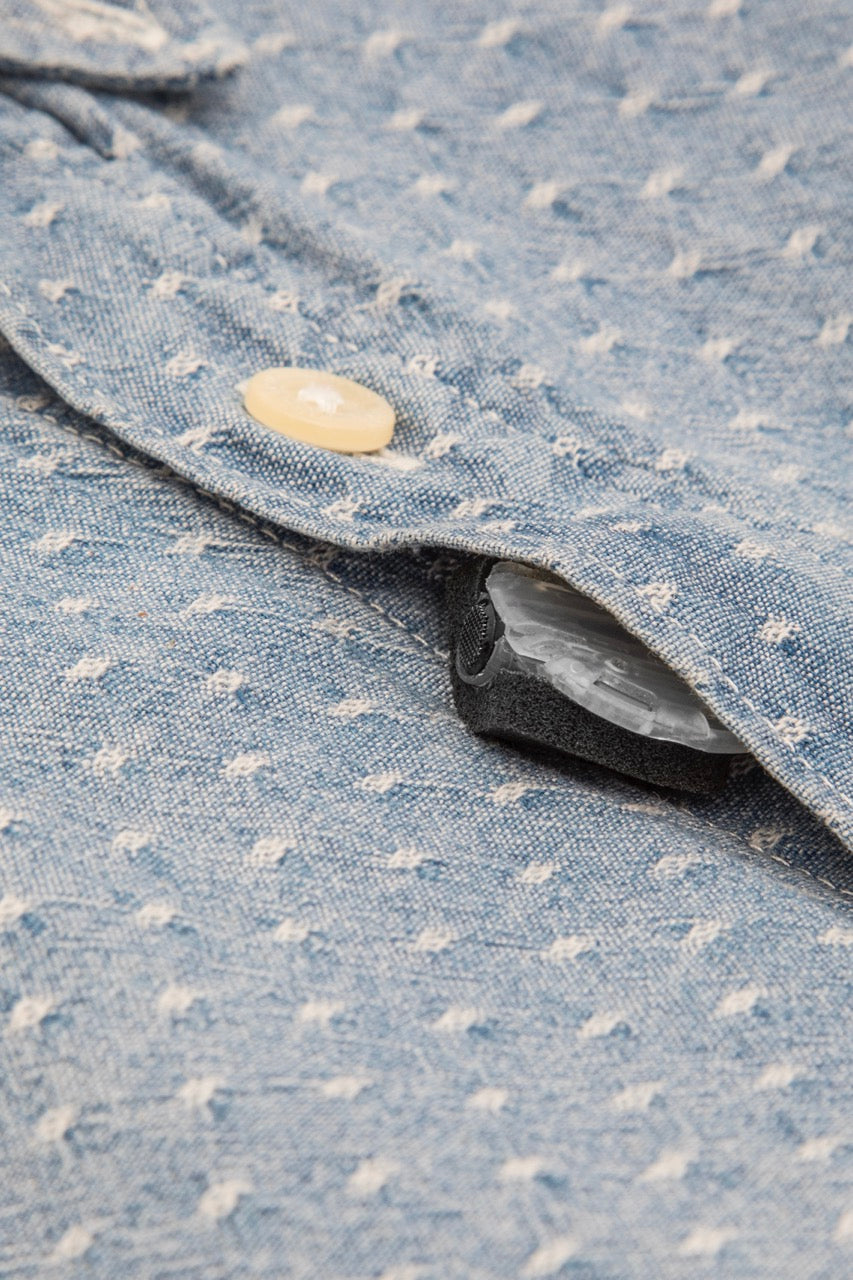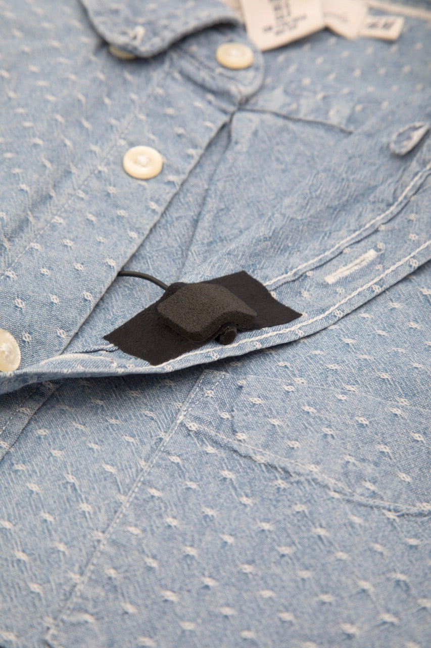 Für zusätzlichen Platz zwischen dem Stoff und dem Lavalier kann das Viviana Pad hinter dem Concealer oder Klebeband positioniert werden, das für die Mikrofonplatzierung verwendet wird. Mehrere Pads können übereinander gestapelt werden, wenn nötig. Darüber hinaus kann das Viviana Pad bei Bedarf auch um die Senderantenne gewickelt werden.